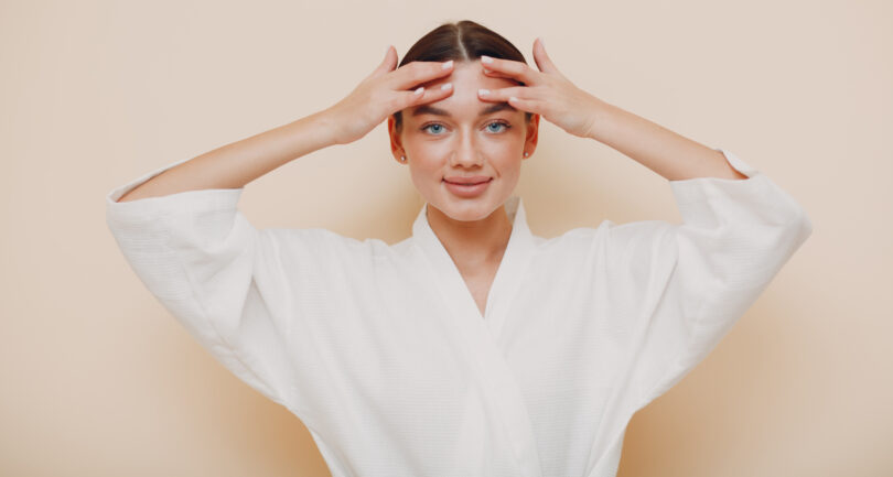 Cu degetul aratator, apasa usor in punctul Yintang si maseaza circular timp de 1-2 minute.