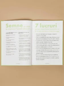 Agenda include informatii, sfaturi si tehnici simple pentru a indeparta stresul si anxietatea. De asemenea, vei regasi in paginile ei numeroase sugestii de mini-pauze sau exercitii care sa te ajute sa te relaxezi, dar si pagini dedicate introspectiei si diverse metode care te ajuta sa te cunosti mai bine si sa te conectezi real la propriile nevoi si dorinte.